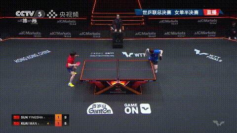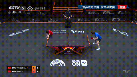第一局较量,蒯曼在战术上主打孙颖莎的正手位,发球多以长球突破,两条直线球配合得干脆利落,进攻带着明显的搏杀气势,一开场就迅速建立起5-0的领先优势。之后孙颖莎及时调整,反过来调动蒯曼的正手位,同时压制住她的反手,一步步追分,很快就将比分扳成5-5平。接下来蒯曼的反拉进攻又硬又准,再次掌控节奏,以8-5重新领跑,最终以11-8拿下第一局,先下一城。